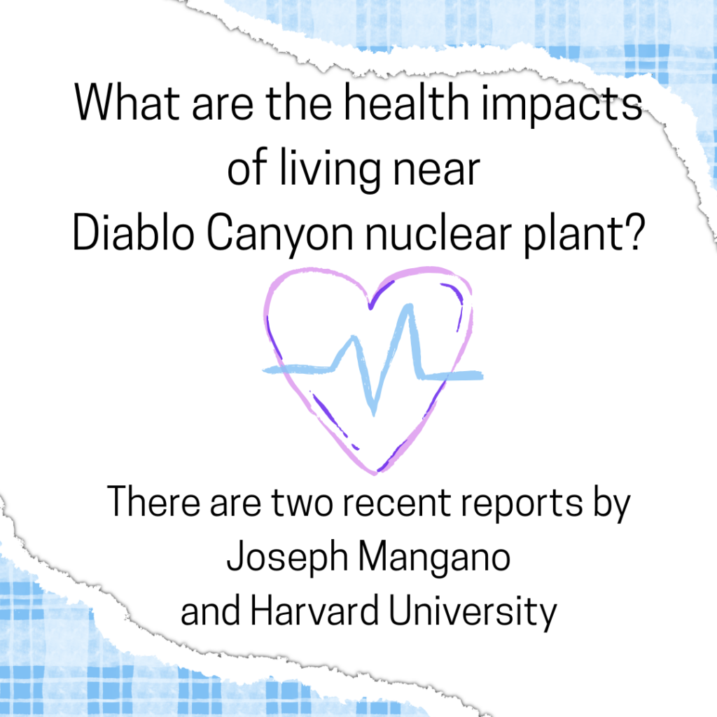 Concerns about health impacts near Diablo Canyon are not new. A March 2, 2014 report titled “Report on Health Status of Residents in San Luis Obispo and Santa Barbara Counties Living Near the Diablo Canyon Nuclear Reactors” by Joseph Mangano, MPH, MBA, examined cancer and other health indicators in communities closest to the plant. That report identified elevated rates of certain cancers and recommended continued monitoring and further study. More than a decade later, comprehensive long-term health monitoring still has not occurred.