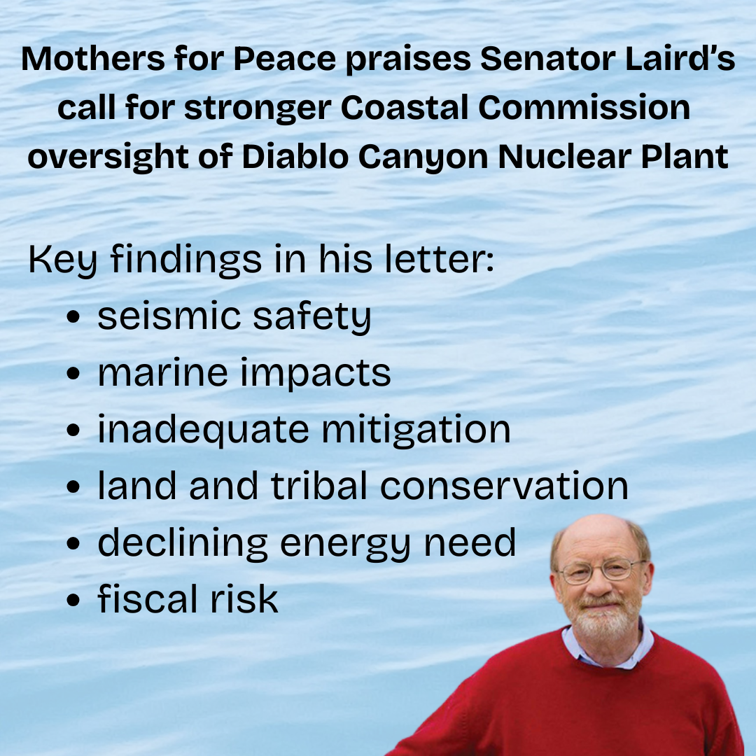 October 29, 2025: Mothers for Peace praises Senator Laird’s call for stronger Coastal Commission oversight of Diablo Canyon Nuclear Plant