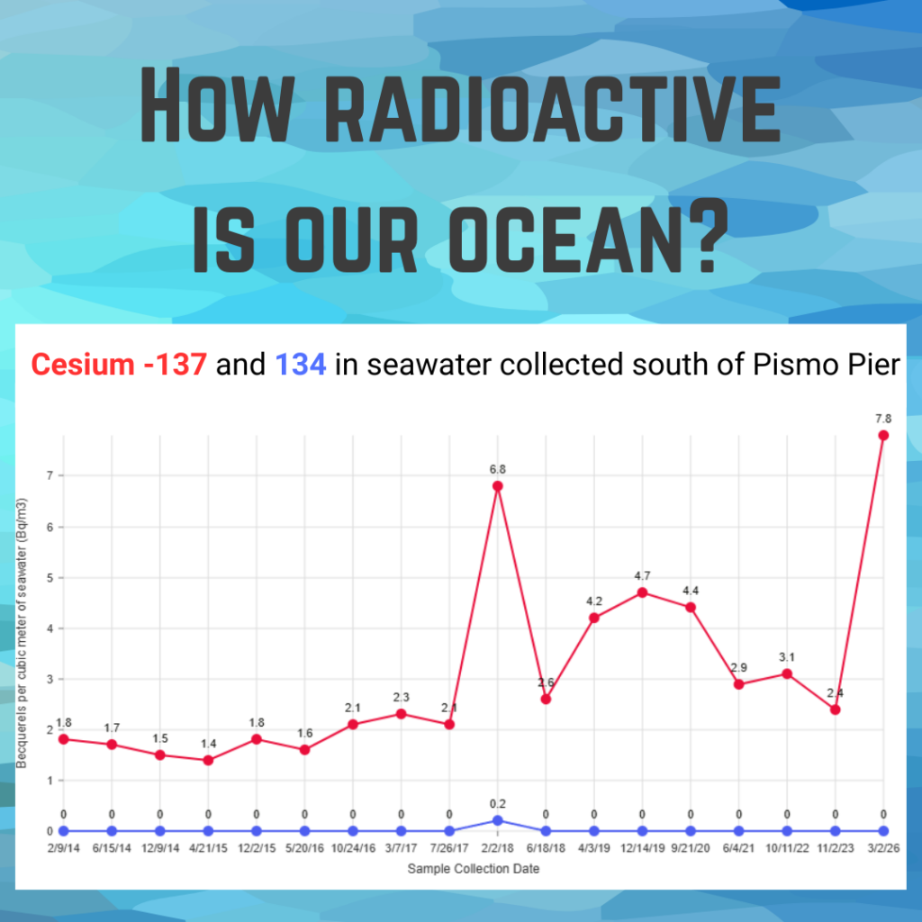 Notably, Japan began discharging treated but still radioactive wastewater from Fukushima into the Pacific Ocean on August 24, 2023. The timing of this discharge and the subsequent increase detected in our March 2026 sampling underscores the urgent need for expanded, transparent, and independent monitoring of ocean water along the California coast.