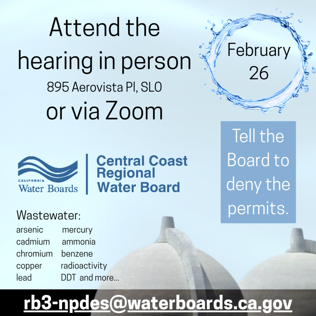 February 26, 2026: Central Coast Regional Water Board Hearing on Diablo Canyon Permits